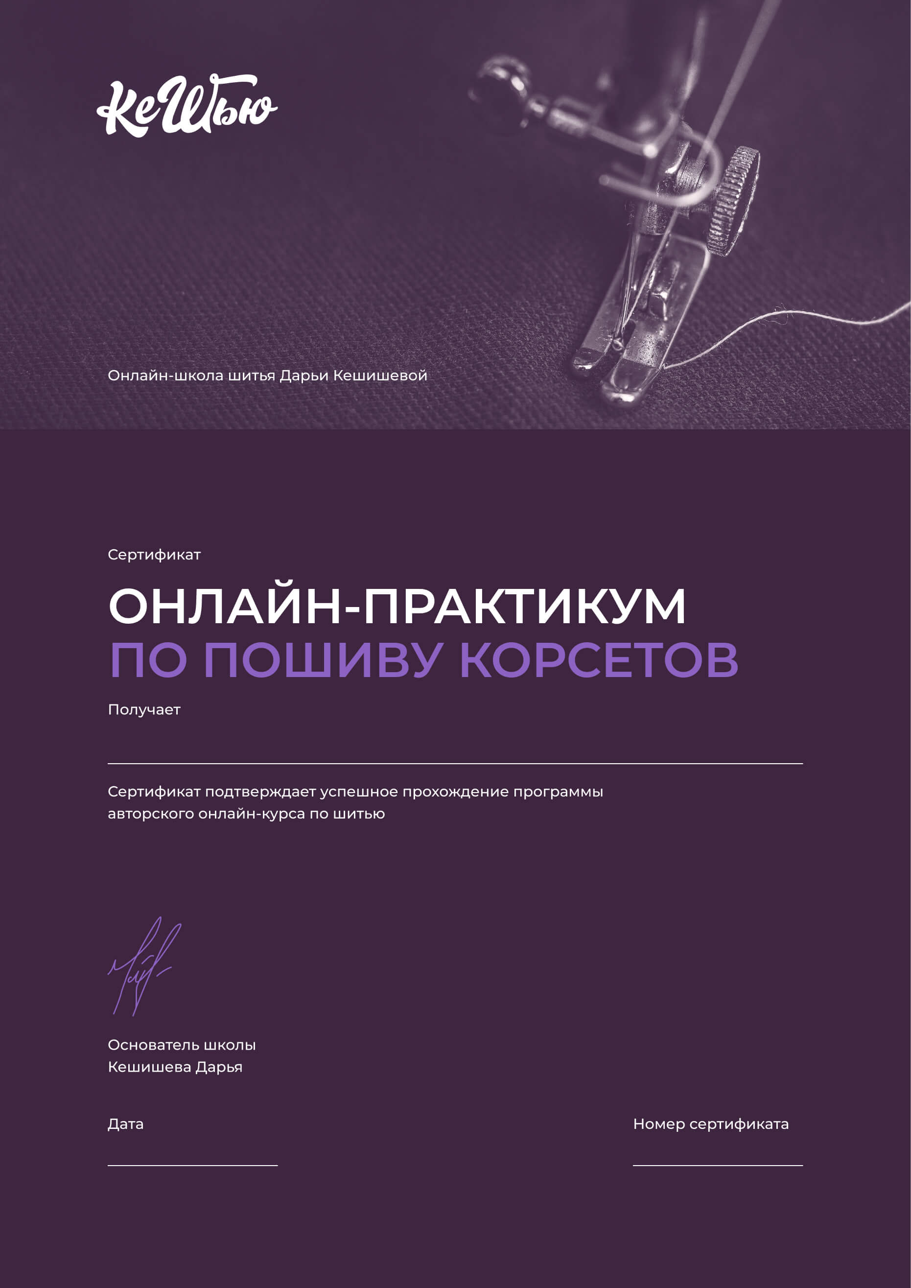 За время обучения, вы самостоятельно с нуля, но под контролем практикующего куратора, сошьете себе корсет по всем правилам технологии пошива. На обучении мы пошагово разбираем 2 разные модели корсетов, которые включают в себя разные элементы, которые в будущем вы сможете скрещивать и перемешивать между собой, создавая новые уникальные модели корсетов.